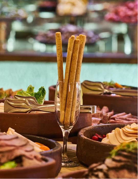 Freuen Sie sich auf ein umfangreiches Buffet mit einer großen Auswahl an warmen und kalten Spezialitäten aus der griechischen und internationalen Küche. An unseren Live-Cooking-Stationen bereiten unsere Köche die Gerichte frisch für Sie zu. Für unsere kleinen Gäste gibt es ein Kinderbuffet mit leckeren und kindgerechten Speisen.