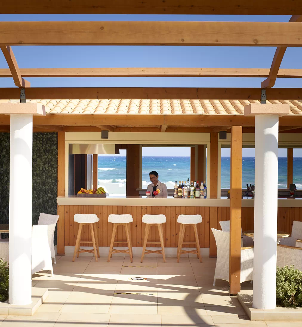 Treat yourself to a fruity cocktail, a freshly brewed coffee specialty, or a chilled glass of wine while taking in breathtaking views of the Cretan Sea, blooming gardens, or our beautiful pools. Each bar offers its own unique atmosphere, ensuring you’ll always find the ideal place to unwind and enjoy.