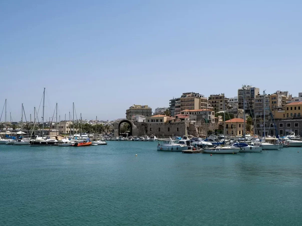 Heraklion, the capital and largest city of Crete, is located on the northern coast and serves as an important economic and cultural hub. The city blends historical and modern architecture, highlighted by the Venetian Koules Fortress at the harbor, impressive city walls, and numerous museums, including the Archaeological Museum, which showcases significant finds from the Minoan civilization.