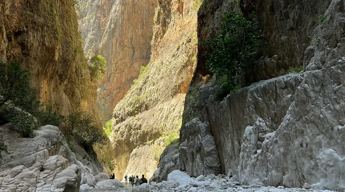 The Samaria Gorge in western Crete is a paradise for hikers and nature lovers. The 16-kilometer hike through the gorge is surrounded by majestic cliffs, dense forests, and untouched nature, ending at the Libyan Sea.