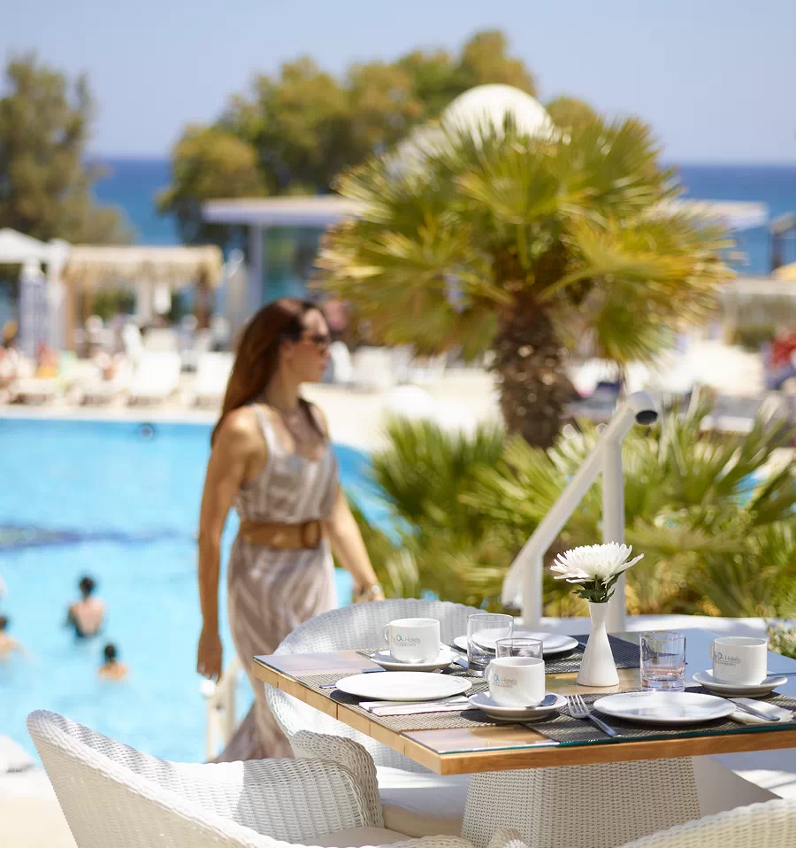 Enjoy a diverse buffet experience at the main restaurant, offering a wide selection of delicious dishes from international and Mediterranean cuisine. Our all-inclusive buffet caters to every taste at every meal. Dine in a relaxed atmosphere while taking in the breathtaking views of the pool and the sparkling Cretan Sea.
